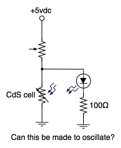 equals less resistance for a CdS cell) thereby dimming the LED, at which point